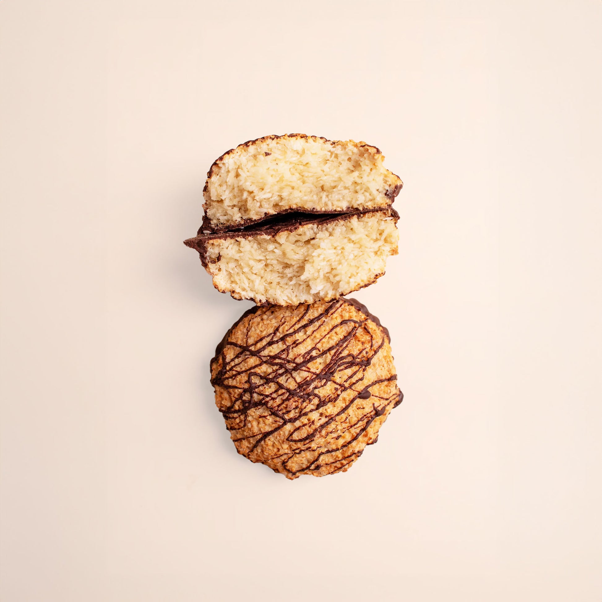 Dipped in our Dominican Republic Zorzal 70% Dark Chocolate, these coconut macaroon cookies deliver that hit of the tropics with a crisp caramelized crunch giving way to a sweet white pillowy coconut finish.