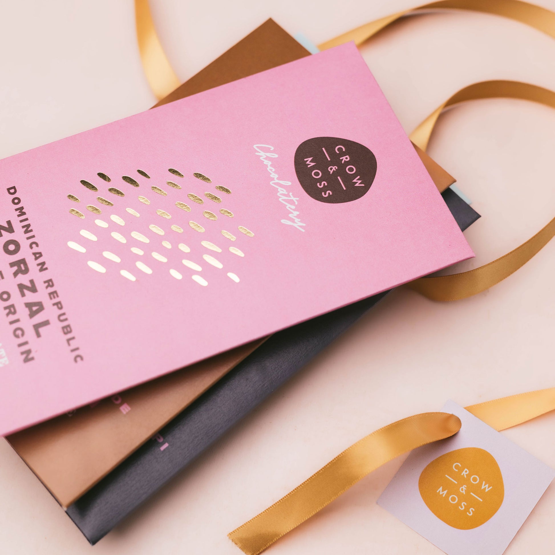Experience the amazing diversity of flavors that cacao can offer with our complete collection of single origin bars. From the tropical, honeyed notes of India Anamalai cacao to the deep, earthy flavors found in the Ecuador Camino Verde bar, this is truly an adventure in flavor, traveling the world via chocolate. Tied in satin ribbon, this makes a wonderful gift.